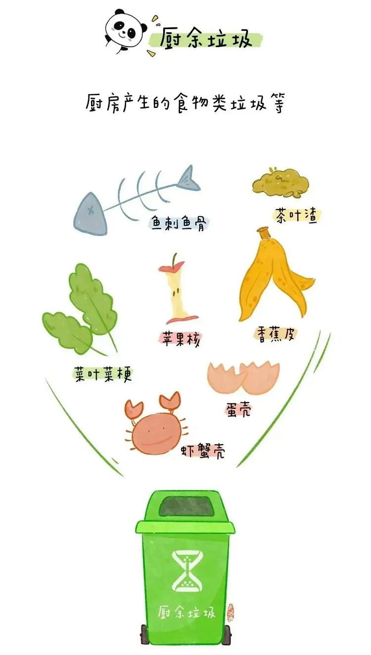 [廚余垃圾] --> 剩菜剩飯、果皮果核、茶葉渣、過(guò)期食品、花卉綠植、食材廢料